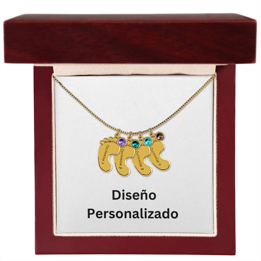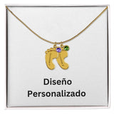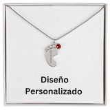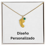 Collar de Piecitos de Bebé Personalizado con Piedra de Nacimiento - Diseño Personalizado